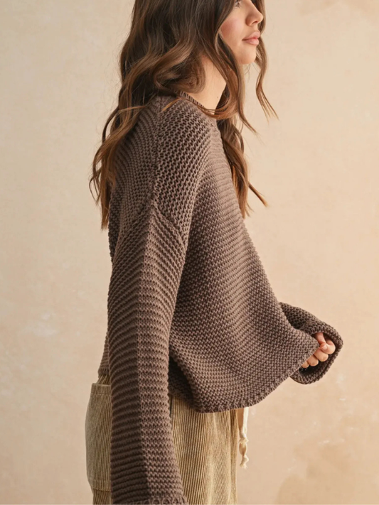 Chocolate Round Neck Knitted Sweater