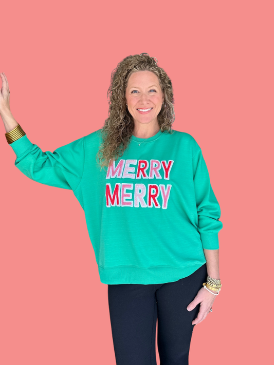 Green Merry Merry Chenille Letter Sweatshirt