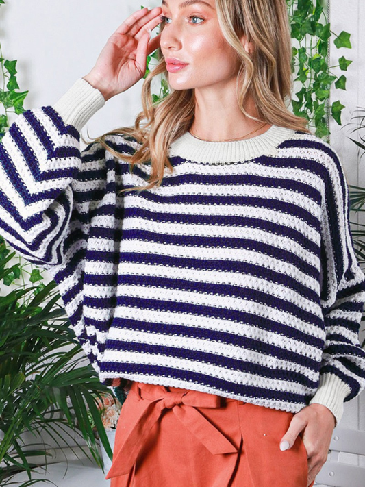 Navy + White Stripe Crochet Sweater