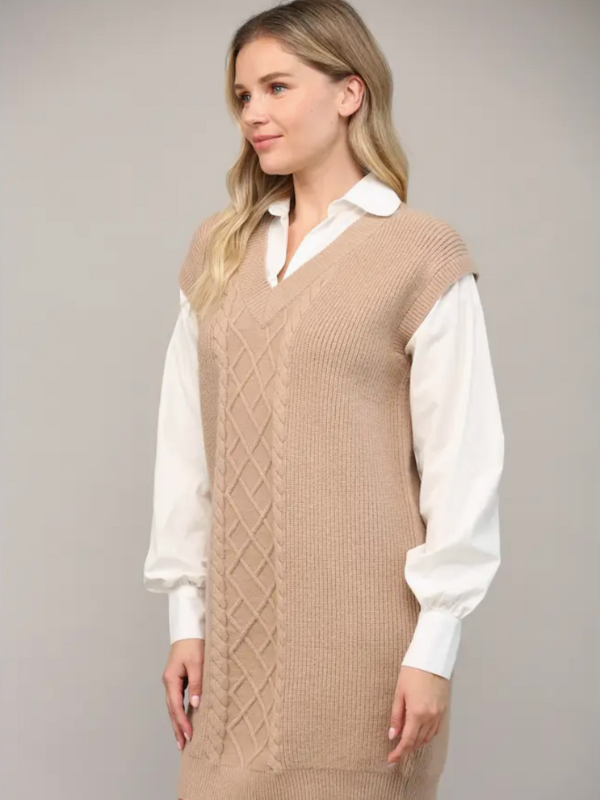 Latte / White Cable Knit Shirt Dress