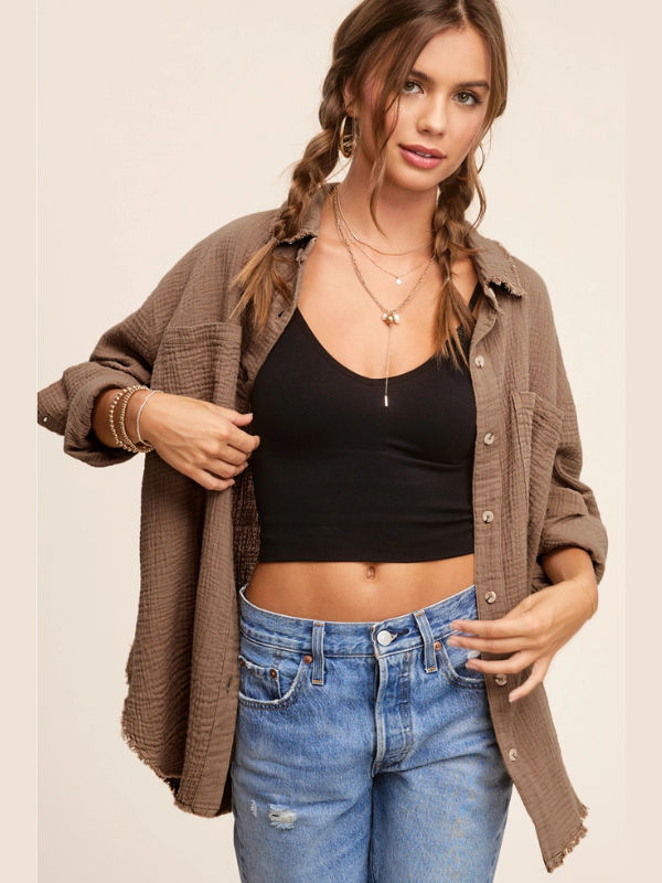 Mocha Gauze Button Down Shirt